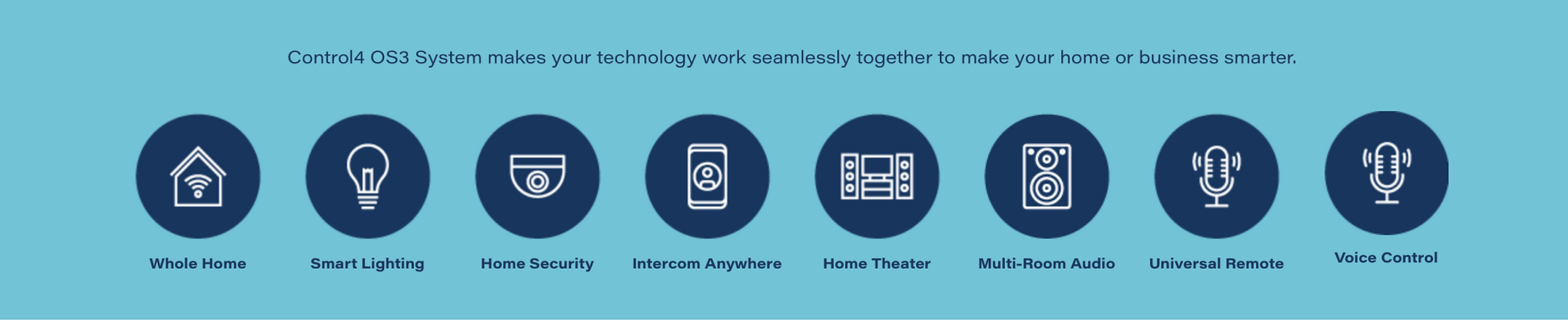further personalize your Smart Home after installation, and the confidence in knowing that the system has been professionally designed and installed. All of our Control4 Smart Home Systems are supported by a robust network, and can be adapted to your needs far into the future.